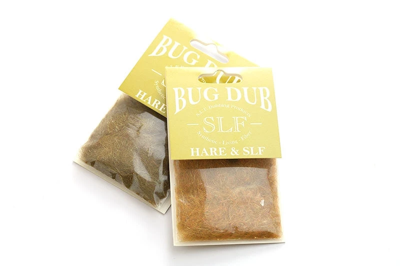 Natural hare fibers and original SLF dubbing mixed with Prism dubbing to provide some flash. Great on nymphs.